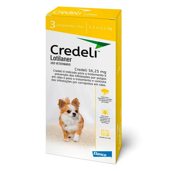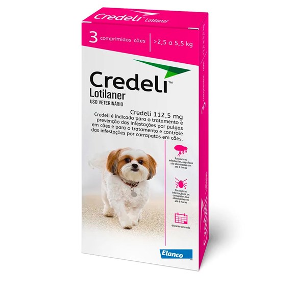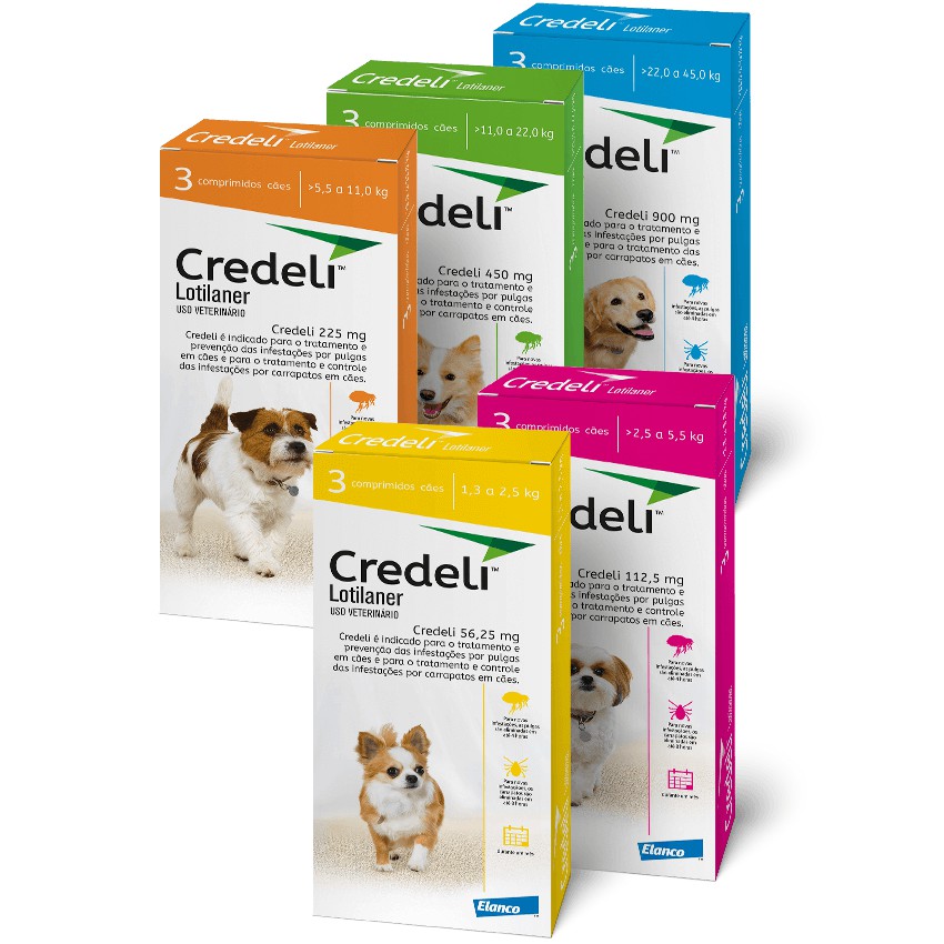 Credeli™ (lotilaner) é um comprimido mastigável, pequeno e saboroso, que atua rapidamente para proteger cães filhotes e adultos contra carrapatos e pulgas. Começa a eliminar carrapatos em até 4 horas. Elimina 100% dos carrapatos em 8 horas. Começa a eliminar pulgas em até 2 horas. Elimina 100% das pulgas em 6 horas.