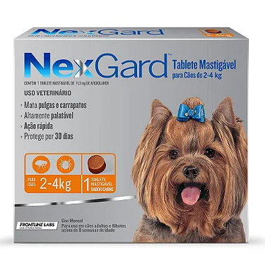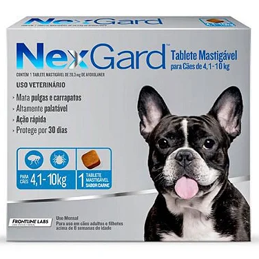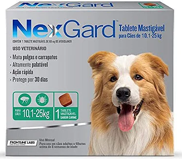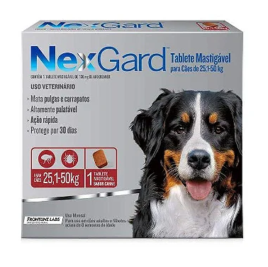 NexGard® é um tablete mastigável contra pulgas e carrapatos. Cada tablete, que tem sabor de carne, oferece não só proteção para o seu cachorro por todo o mês, como também é muito fácil de administrar. Os cães adoram seu gostinho.